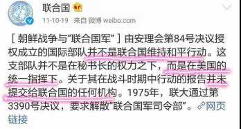 接着,此人说“当时联合国就通过了决议,出动了联合国军”。对此,联合国早有说明:由安理会第84号决议授权成立的国际部队并不是联合国维持和平行动。这支部队并不是在秘书长的权力之下,而是在美国的统一指挥下。关于其在战斗时期中行动的报告并未提交给联合国的任何机构。这位先生,麻烦睁大您的眼睛看清楚了,所谓的“联合国军”与联合国没有一毛钱关系!给美国洗地是你的自由,可这样枉顾事实昧着良心的洗地不觉得寒碜么?