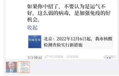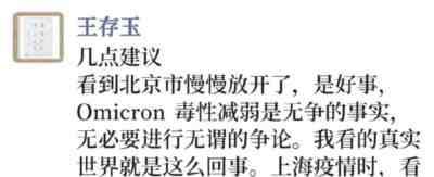 二是美国国家医学院院士、中国工程院外籍院士王存玉的一条朋友圈内容在网络上被广泛传播,王院士给国内民众提出了“几点建议”,无非是消除恐惧、多喝水之类: