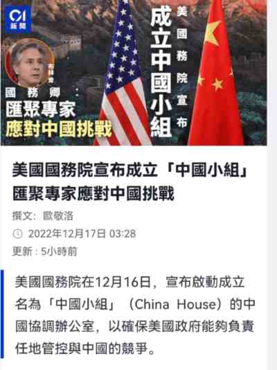最后附上一条最新消息,美国在国会、CIA等众多政府机构成立以反华为目的的所谓“中国小组”之后,美国的国务院也成立了所谓的“中国小组”。