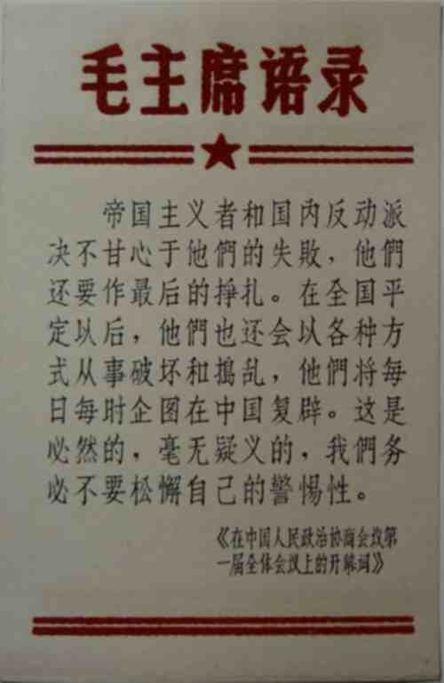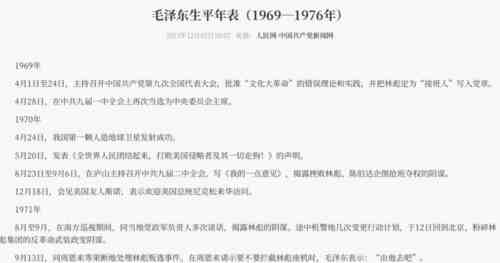 2、毛主席语录是否包含1971年内容?根据百度百科搜索,总政版《毛主席语录》第一版于1964年5月1日出版。1965年8月1日出版第二版,内容作了修订。人民出版社还编辑了一本《毛主席语录一百条》,副题“供工农群众学习兼作识字课本用”,于1966年10月排出样本,但最终没有发表。从中可见,这三版60年代的语录根本不可能含有1971年的内容。