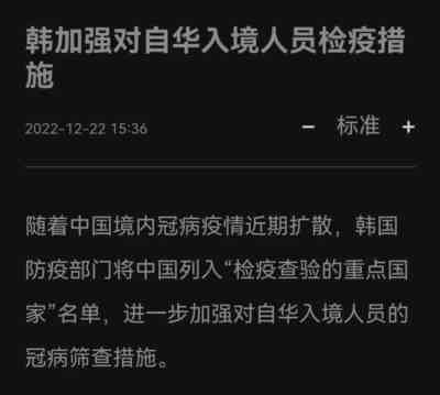 印度不是第一个这么干的,前一天,多家媒体披露,韩国早在12月16日,就将中国列入“检疫查验重点国家”名单。要知道,韩国自身正处于新一波奥密克戎感染高发期,日增9万+。