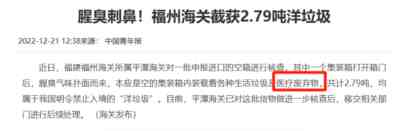 12月23日,伙伴在群里发来消息,福州海关截获洋垃圾,且是腥臭刺鼻的医疗废弃物。