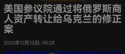 不过是砧板上的鱼肉。当地时间12月22日,美国参议院已经修法将俄罗斯富豪个人资产转让给乌克兰;而之前,同为盎撒人主导的加拿大,已经开始查封和没收俄罗斯商人阿布拉莫维奇的资产。