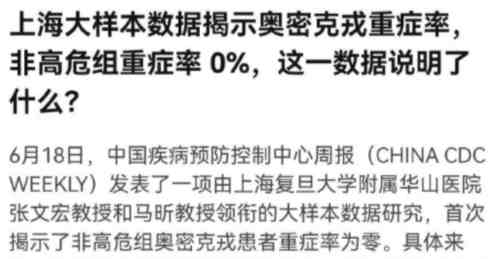 而且张文宏不仅是提出了98%的无症状感染者来混淆是非,还提出了重磅论据称上海奥密克绒重症率极低,其中非高危组重症率干脆写成了零!这一顿骚操作,我就问你服不服?一个博士论文都敢抄袭的专家还有啥是他不敢干的?