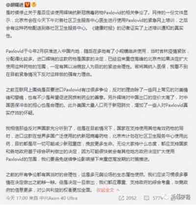 胡锡进一上来就拿出了权威的文件背书,网传北京市会在今天下午对各社区卫生服务中心医生进行辉瑞P药的紧急网上培训,之后会有这种药物配送到各社区卫生服务中心。老胡还特意向健康时报求证了此事的真实性。