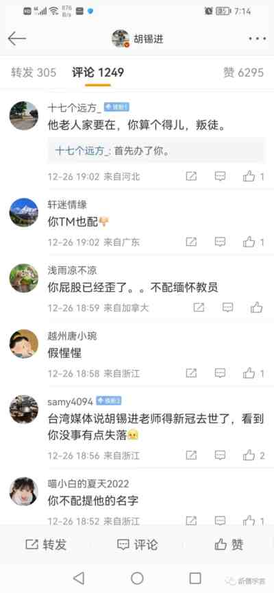 老胡还说这辉瑞P药将纳入医保,你们不许反对。还说你们反对的各种声音,比如P药价格太高,对美国生物战的情绪和警惕、促进民族制药业的善意、对中国医保的冲击、美国死了100多万人引发对辉瑞P药效果的担忧等等反对理由。
