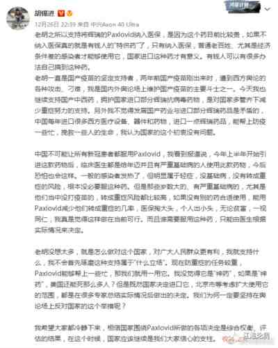 破门大功告成之后,前胡编一路高歌猛进,做起了已经治死一百多万人的辉瑞“特效药”奈玛特韦片/利托那韦片的代言人。不仅不准中国人民争论,还蛊惑政府将治死一百多万美国人的辉瑞“特效药”纳入中国的医保。并跪求美国主子发发善心。