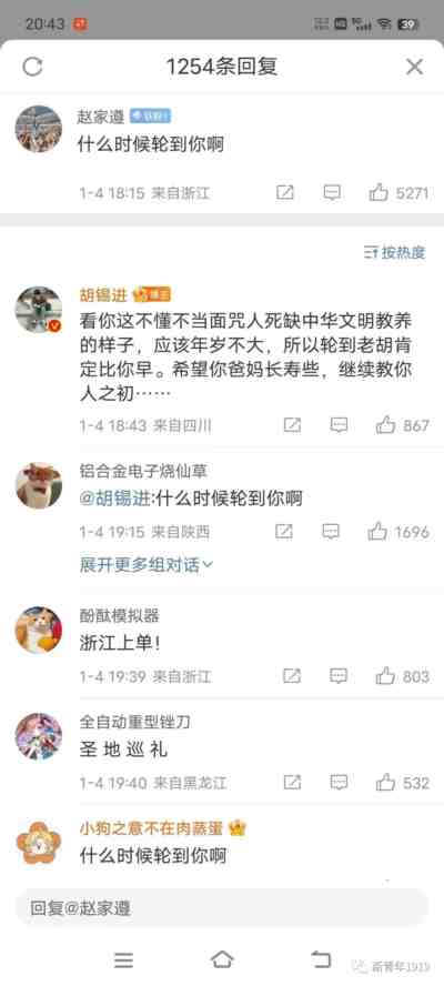 等到胡锡进感染新冠后,年轻人气愤地说:什么时候轮到你(死)?胡锡进同志摇身一变,开始语重心长地传道:尊老爱幼是中华民族的传统美德。