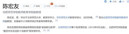 在安徽合肥的庐州中学,有一位叫陈宏友的教授。这教授头衔不少,获评过“最受学生欢迎的十佳教师”,“省级教坛新秀”等荣誉称号,是合肥教育界的名师。