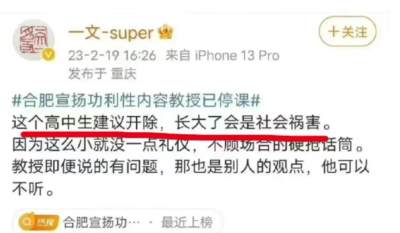 “学生干嘛要处理?我们的学生三观很正,很好。”