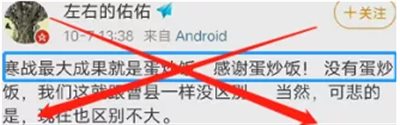 “蛋炒饭”在公知嘴里说出来是有特殊含义的。如跟在罗昌平后面侮辱“冰雕连”英雄的@左右的佑佑(行政拘留10日),“蛋炒饭”三个字连这种小公知都张嘴就来,你还能说网友“敏感”“神经过敏”吗?