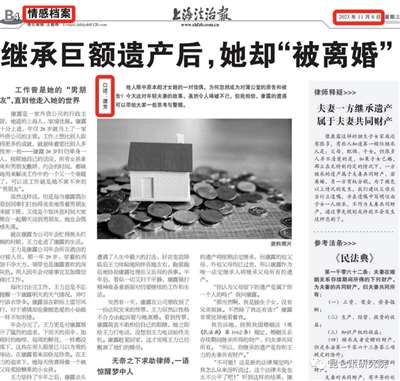 ●11月8日,谭芳把同一个故事润色了一下发表在了《上海法治报》的“情感档案”栏目。这次文章去掉了“虚构”声明,来源变成了根据谭芳“口述”。