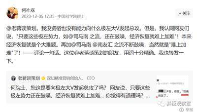目前,在自媒体的舆论场,有些人喜欢动不动就给别人扣上“极左”的帽子,像何祚庥、胡锡进、任泽平、王小东等都是这样的人。