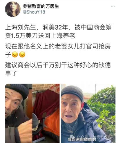 这个刘老头当年黑在美国,遗弃妻儿,现在国内妻儿生活好了,自己混不下去了,在沈女士的帮助下,顺利跑回国争起了房产。还用中国的税金吃上了低保。