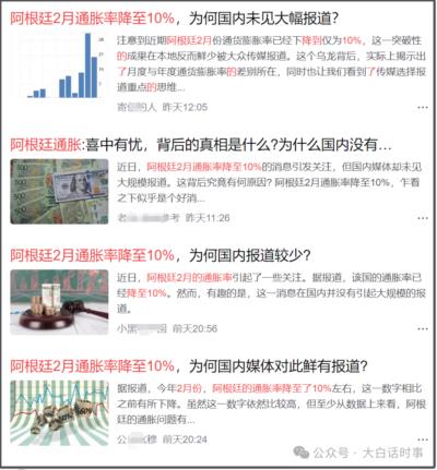 看到这里可能有人会感到奇怪,因为大家可能前段时间会看到这样的标题《阿根廷2月的通胀率降到了10%,为什么国内没有大规模报道?》