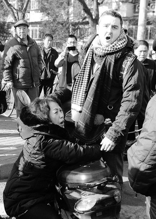 12月3日,一组“外国小伙儿扶摔倒女子被讹”的图片被许多媒体转载。很多人联想到扶老人被讹的南京彭宇案,却不知彭宇案早已逆转,彭宇在调解时承认当时撞了老人。几年前媒体误导舆论导致的消极影响,在这个事件中再次显现出来。很多官媒和微博平台都转发了倾向性的报道,如人民日报官方微博称是“疑遭讹诈”,而财新网微博则比较确认地表述外国人“遭讹诈”。