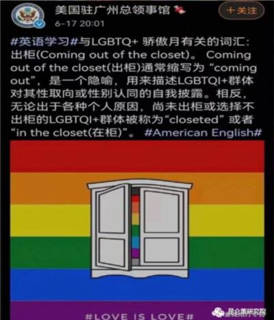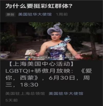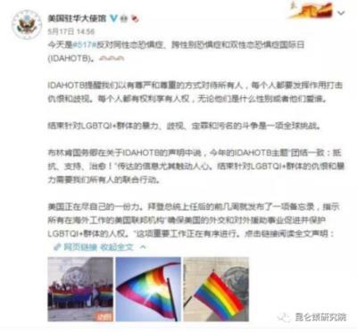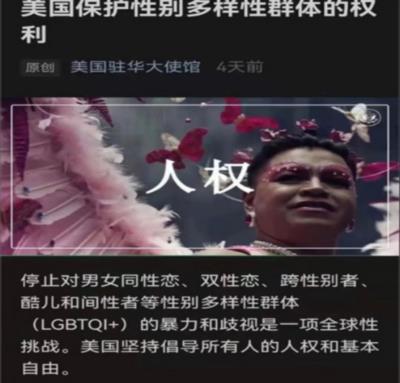 美国大使馆年复一年、日复一日地用中文在中国宣传LGBT。
