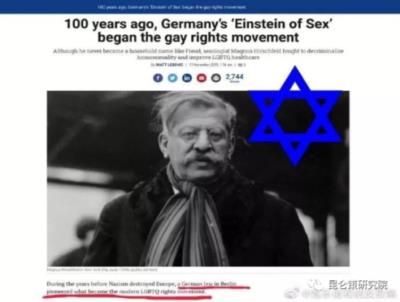 有同性恋倾向的人虽自古就存在,但要求被认定与异性恋同等,甚至欲图获得法定婚姻地位(下一步就是通过收养孩子获得儿童接触权 ),被美化乃至成为主流和时髦,这些都是近代来自西方的首创。而在这个异军突起的LGBT运动中,犹太精英的影响贯穿整个起源、策划和推广的进程。