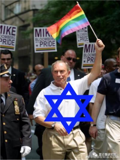 而身价600亿美元的犹太大亨,曾参与竞选总统的世界著名财经媒体彭博社老板布隆伯格Michael Bloomberg也以支持同性恋著称,曾亲自参加同性恋游行,并高举彩虹旗。