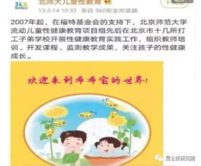 2007年,北师大接受美国福特基金的支持,成立北师大流动儿童性健康教育项目组,并且出版小学生性教育健康读本,直接对十岁左右的孩子灌输同性恋、双性恋教育。北师大聘请美国的同性恋教师,以此诱导该校学生的同性恋倾向。美国福特基金会曾有资助我国刘文利教授,组建“北京师范大学儿童性教育课题组”,研发了小学1-6年级的教材,涉及传播同性恋等LGBT内容。