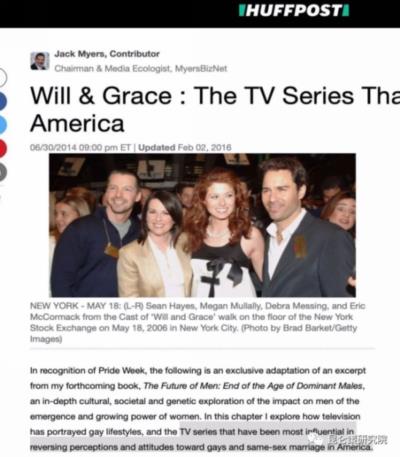 拜登进一步指出:热播美剧《威尔与格蕾丝》Will and Grace 在改变美国人对同性恋的态度上起到了至关重要的作用。