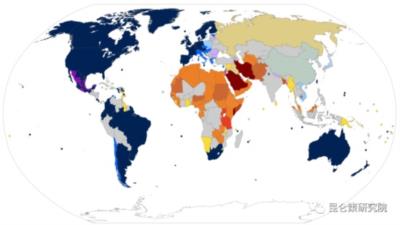 如上图,全球支持同性恋婚姻的国家为深蓝色,灰色为无明确法律规定的“未决国”,橘色为反对同性恋的国家。