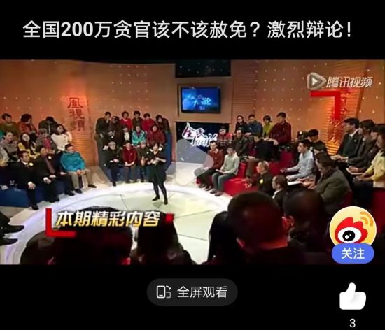 这档节目8月22日抛出的问题是"贪官该不该赦免",参加辩论的嘉宾不是专家就是学者。