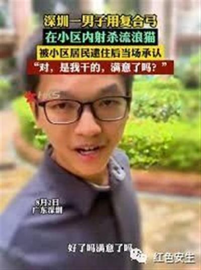 前几天,深圳某人用复合弓在小区在小区射击流浪猫,完全不顾复合弓能洞穿人体,滥用复合弓对居民的威胁。一群人为之叫好。我说应该对流浪动物有同情心,这些人大惊小怪。