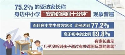 这个现象并不是最近才兴起,据2019年中国青年报社的一组调查显示,77.2%的小学生“享受”着安静的课间十分钟。