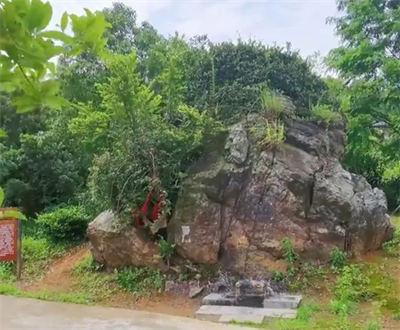 但是,毛主席幼时,长辈们偏偏给他认了这块石头做干娘。如今,三四米高的巨石之上,已经爬满了开着小花的藤萝,远看就像一丛巨型绿植。