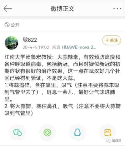 几瓣蒜,捣成蒜泥,放在鼻子前,深深吸其蒜味,吸到肺里,充满肺部,可防治新冠肺炎。(此法由江南大学汤鲁宏教授推荐,郑氏防感茶有蒜的支持效果更明显)