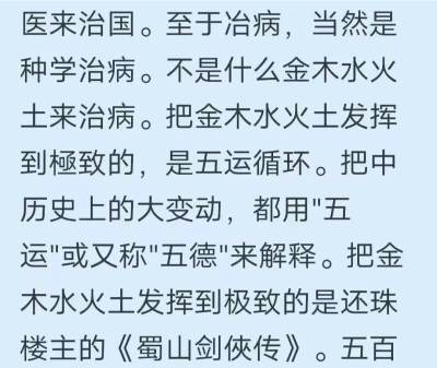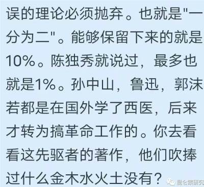 所以奉劝@何祚庥老先生不能对阴阳五行进行片面理解,你的这种只见树木,不见森林式的理解,毛病在于只看到了事物的表像,而看不到事物的实质!