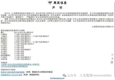 “上海黑英信息技术有限公司及法定代表人周帅先生于2025年3月5日受到美国政府的无端指控,并于同日被美国财政部非法单边制裁。2025年3月6日中华人民共和国境内大量金融机构协助美国政府对本公司及周帅先生采取歧视性限制措施(包括并不限于冻结账户、强制销户),严重侵犯了本公司及周帅先生的合法权益。”