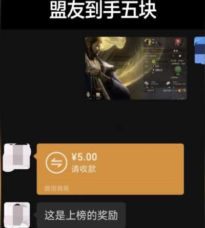 除铺路团外,金主还安排了给骨干战力重金奖励,也就是打盟战立下大功的,能上榜的,给奖金。