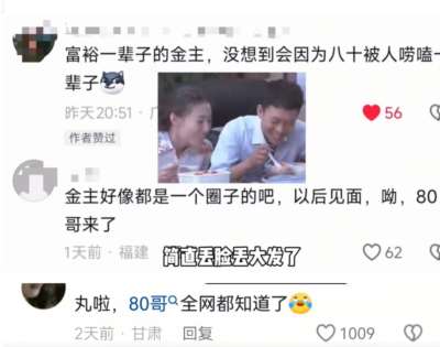 这件事的搞笑度太高了,精准踩中了各方面的G点,于是立马就有人做了很多短视频,把“80没有万”给弄成了一个热梗,还让这个盟的金主活生生多了一个称号叫“80哥”。