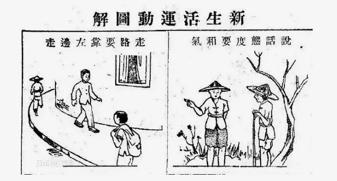 蒋介石认为,当时的中国人举止太不文明了,随地吐痰、走路抽烟、头发很长、厕所太臭、吃饭不好看等等。