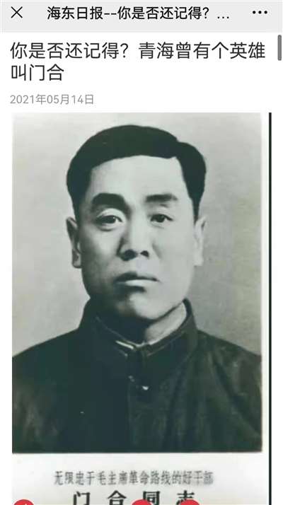 令人欣慰的是,2014年5月8日,在门合同志牺牲的地方青海贵南塔秀乡巴塘新村,开展了学习门合英雄事迹主题活动,以切身感受历史与现实的对比……(以上根据百度百科“门合”词条)