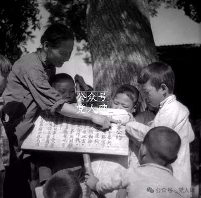 劳动英雄韩凤龄带小学生读《拥军公约》,1944年,白连生 摄