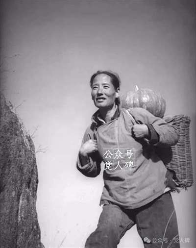劳动英雄韩凤龄背着自己种的大南瓜,涞源,1943年,白连生 摄