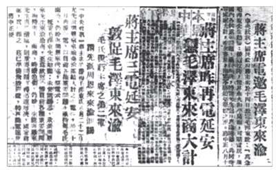 《中央日报》刊登的蒋介石三邀毛泽东的新闻