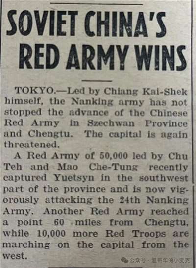 值得一提的是,金博尔还向笔者介绍,加共华人支部当闻讯红军长征的消息后,试图尝试各种途径搜寻即时新闻然后准备捐款支援,于是笔者就发现了一则《苏维埃中国红军获胜》的报道,原文刊登在1935年夏《卑诗劳工新闻报》,讲述的是红军进入四川并准备过雪山,消息来源是东京,要知道彼时中共中央同共产国际还处于失联状态,陈云同年10月才到莫斯科,《救国时报》向海外介绍红军事迹是1936年,而当时日本共产党也处于被镇压状态,那么加共是如何第一时间就得到消息的,成为一大谜团。