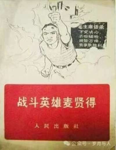 钢铁战士麦贤得,特殊材料构成格。官骸气质凛自然,经过锻炼圣凡别。参加革命学毛选,变化气质及体魄。阶级觉悟日提高,斗争起来更积极;思想若能革命化,五官百骸听驱策。杀敌勇敢大无畏,忘我不知伤在额。不下火线固已奇,昏迷还在转轮机。勇撼山岳慑虎豹,威鼓洪涛荡海孽。炮轰敌舰浪中沉,霹雳精神骇残贼。不怕苦,不怕难,不怕死在眼前迫,毛泽东思想哺育此心赤。董存瑞、黄继光、雷锋、王杰,欧阳海,战斗英雄千百辈,君列其中也生色。大庆人,大寨人,各行各业出群英,读书活用获成绩,闻君风者皆感激。为革命、为人民而死,死得其所;为革命、为人民而生,生非虚食。毛泽东思想所哺育的人将以斯言为天下式。