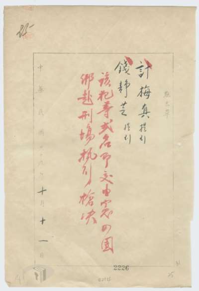 计梅真、钱静芝两人的枪决点名单。图片来源:《两岸犇报》
