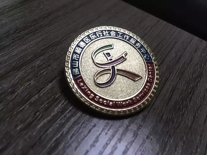 图为佛山市顺德区乐行社会工作服务中心的纪念胸章。很多工友在乐行找到了同样遭遇的伙伴,互相鼓励继续乐观生活。