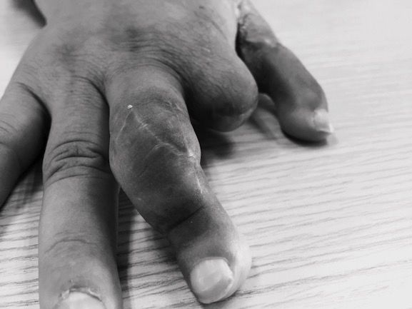 工友通知了办公室里的人,他们把阿福送到了医院。医生帮她包扎的时候,阿福看见自己的右手空了,根本没有办法描述自己当时的心情,反正就是觉得自己是全天下受伤最严重的人了。医生说,手指长不回来了,但是可以把脚趾移植到手指上,以后功能是还好的。