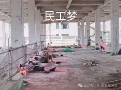 中午,吃过午饭,有个把小时的午休时间,工友们有的懒得回宿舍,就在工地上找个地方午睡。