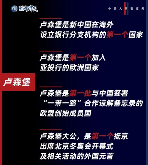 刁大明告诉谭主,卢森堡在对外交往、在大国关系中长期奉行平等原则,也积极推进各方对话,与中美两国都保持良好关系,对两国而言不偏不倚。