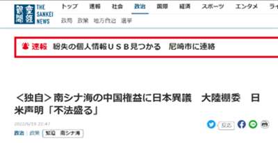 先是日本《产经新闻》推出所谓“独家新闻”,声称“日本反对中国将南海设为内水”。虽然日本国内没什么媒体跟进,社会反响也寥寥,但是台湾媒体如获至宝,原文照翻,水花也是有限。