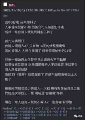 今天我在网上看到了某个第一批赴美的台积电员工的爆料,总共才300个人,美国人都安排不过来,各项待遇都比当地人要少,还要求加班,搞得自己好像是“次等奴工一样”,所以一群台湾人都气到不想干活了。