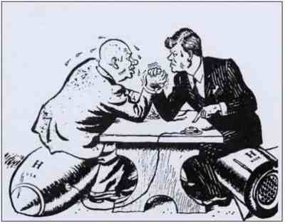 古巴导弹危机的时候,美国总统肯尼迪相当年轻,年轻不免气盛,赫鲁晓夫继承斯大林心高气傲,谁都不尿谁,扬言摸核按钮开打的时候。